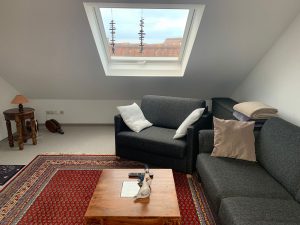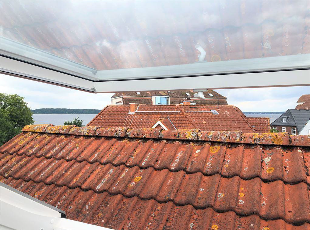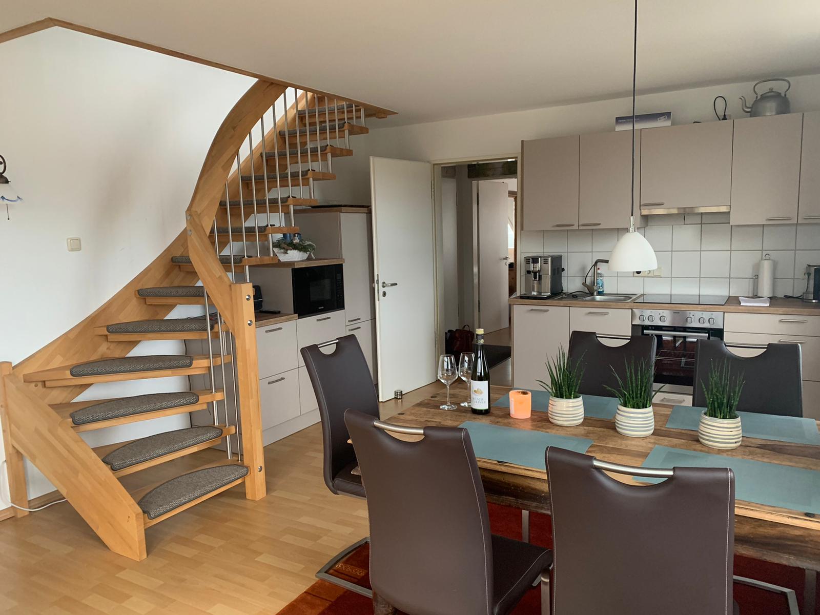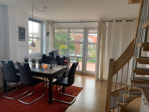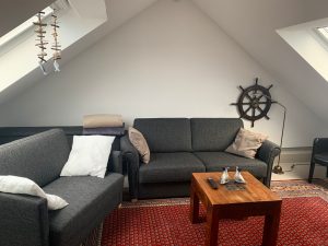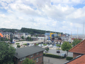 Die schöne Residenz Hafenblick hat 16 Wohnungen, im Dachgeschoss befinden sich die Maisonette „Strandläufer“. Diese zeichnen sich durch einen großzügigen Schnitt mit einem Schlafzimmer (mit Doppelbeet), einem kombinierten Wohn- und Schlafzimmer (mit einem Schlafsofa für zwei und einem Schlafsessel), einer neuen Wohnküche und einem Duschbad aus. Der Balkon ist möbliert inklusive Sonnenschirm. Die Wohnung reicht bequem für vier, eventuell für fünf Personen.
